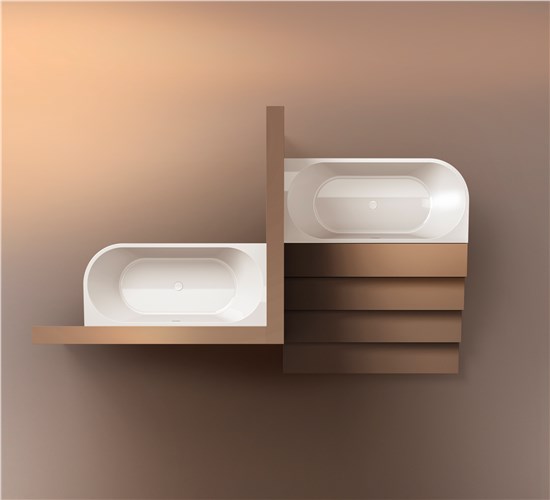 Depending on the choice and taste, the freestanding Cora bathtub is available in glossy white, matt finishes, or in the refined two-tone versions. It is possible to chose from a wide range of colored finishes, to match any furnishing style.