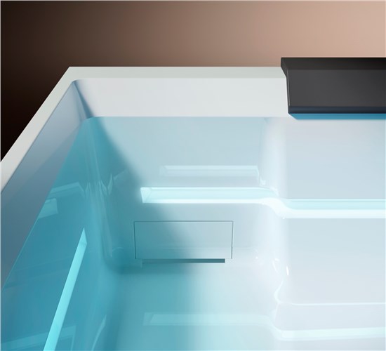 Soul 150 is the result of a continuous effort to improve the technical and aesthetic features of the Treesse Soul tub. The interior is even more ergonomic; the technical elements are hidden from view, including the water drain. Its increased width allows it to accommodate two people, each with a comfortable reclining position and dedicated headrest cushions.