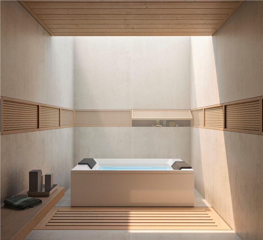 The Ghost system is installed on whirlpool tubs and spas designed according to the principles of visual elegance and minimalism, typical of the finest Italian design. In this way, any interior design project can be enhanced by a Ghost tub or spa, creating a wellness area within the home, garden, or hotel.