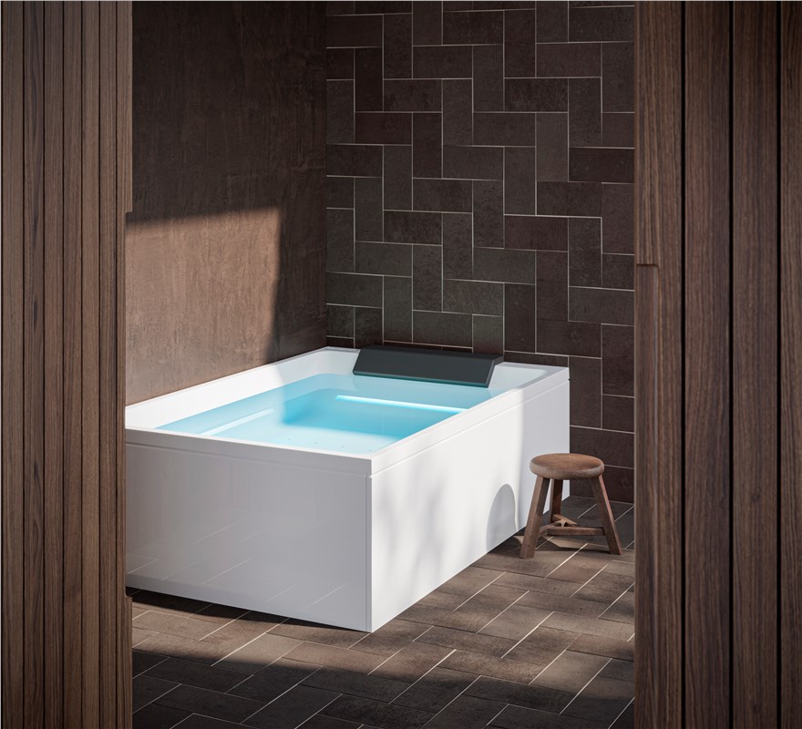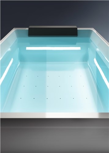 The dimensions of Soul are 180 by 120 centimeters with a height of 60 centimeters. Its compact shape and squared yet harmonious sides make it suitable for installation both at the center of a space, a wellness area, or a bathroom, and for being built-in.