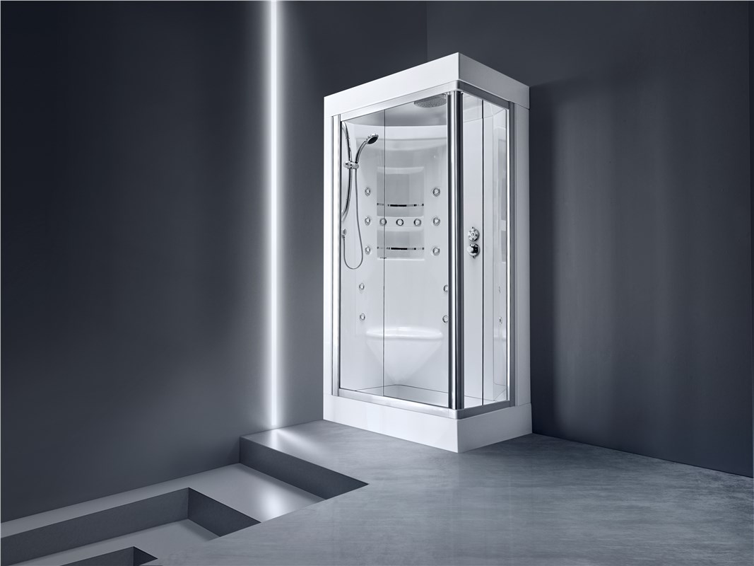 Acquazzurra 80 multifunctional shower box combines the classic functions of a traditional shower with a series of additional pluses that make it a small home spa. For a toning and purifying effect you will be able to enjoy the benefits of the Turkish bat (in the STB version), but also those of the vertical and cervical hydromassage thanks to the jets positioned along the wall of the box. All while sitting comfortably on a seat.