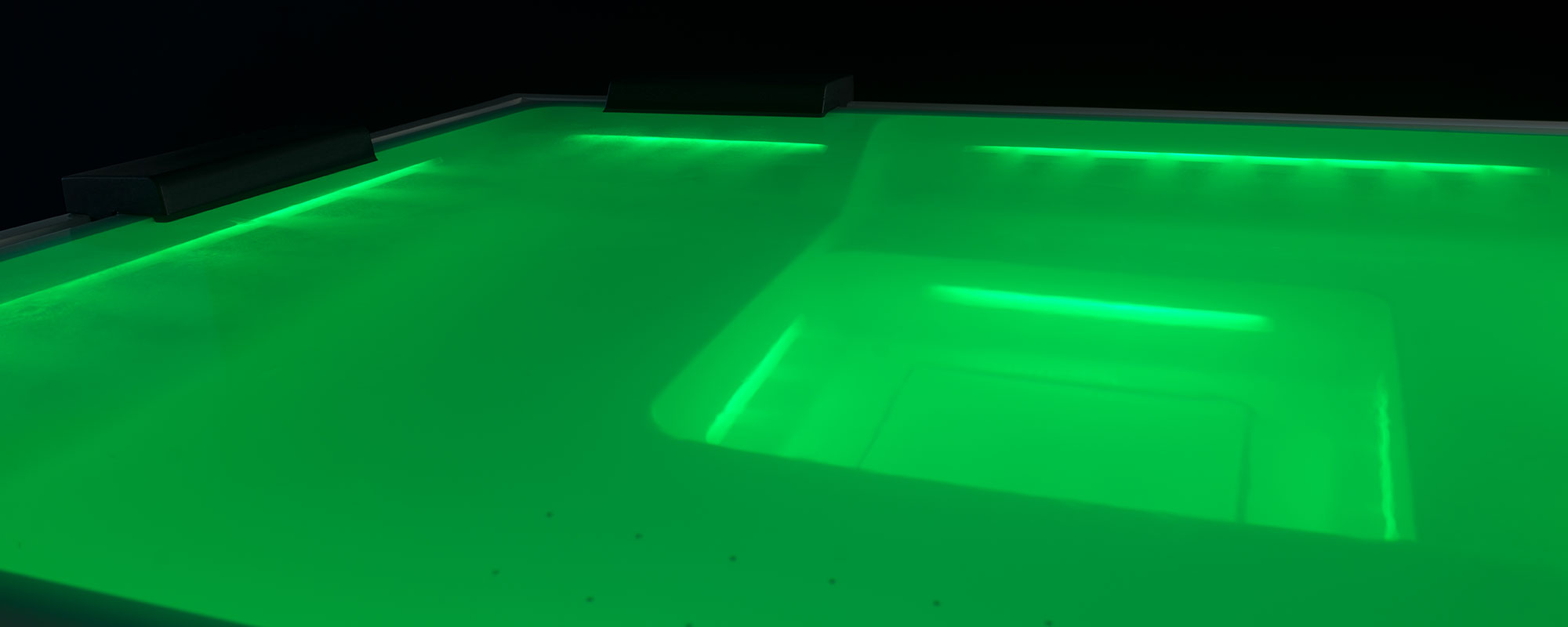 Even with Ghost Plus the shapes and lines of these spas are fully highlighted. All the hydromassage hardware remains hidden in an internal perimeter slot that also houses a multicolored LED lighting that reproduces the effects of chromotherapy. As if by magic, a beam of light animates the water, offering limitless comfort.