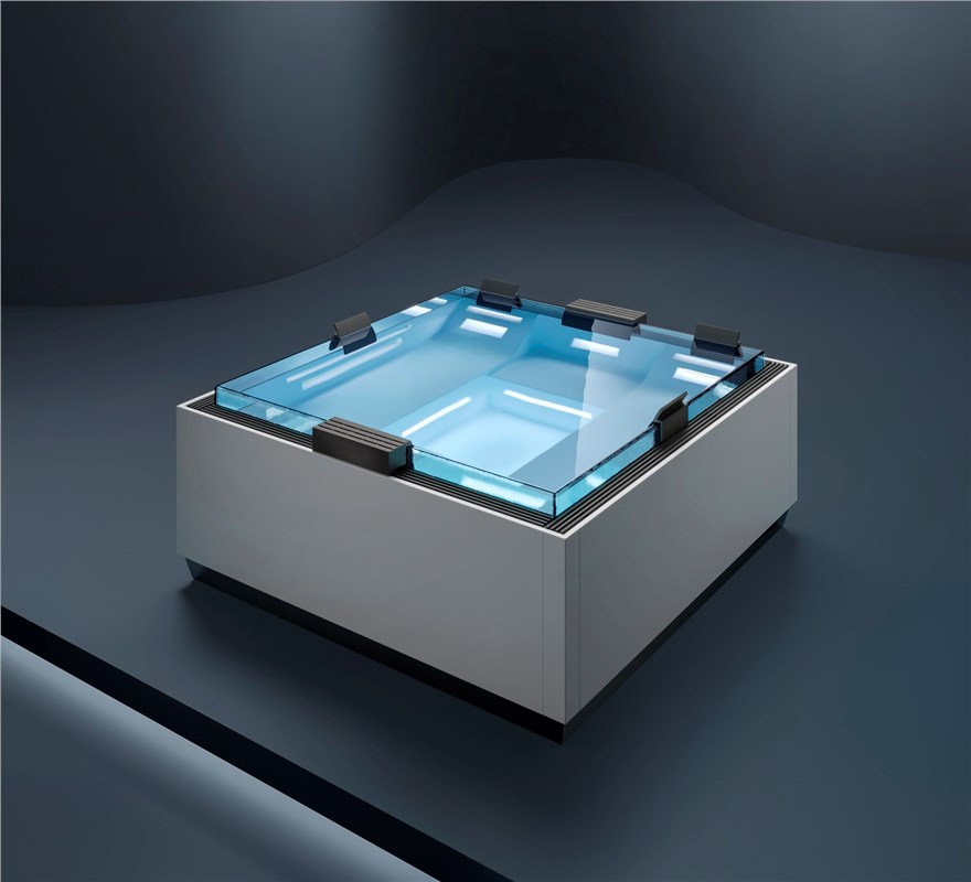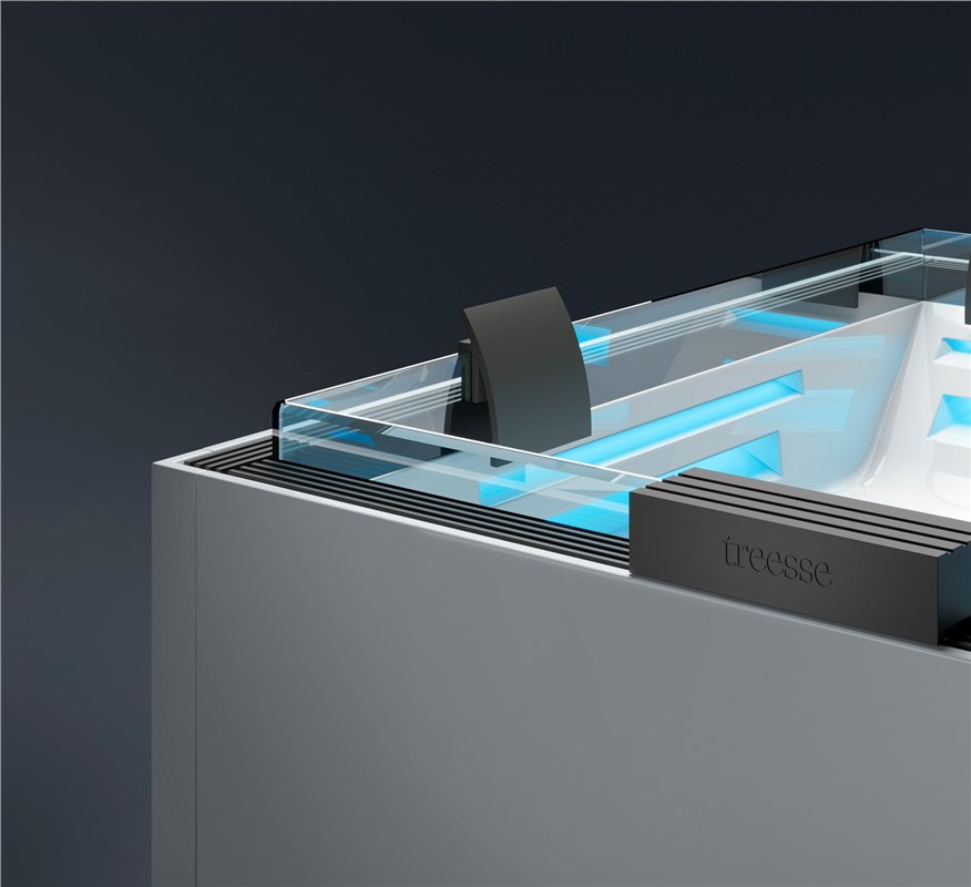 ICE is the new Treesse spa with glass edge and overflow effect, featuring a captivating and elegant look. Designed by Marc Sadler, ICE brings a new touch of lightness to Treesse's hot tub world, enhancing the visual continuity between indoor and outdoor spaces through the play of reflections on the glass surface.