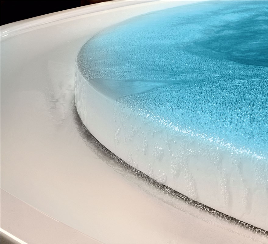 Furthermore, thanks to the chromotherapy effects replicated by concealed multicolored LED lighting, the wellness experience becomes harmonious and soothing. A beam of light magically animates the water, creating a unique interplay of colors that will make relaxation even more enveloping.