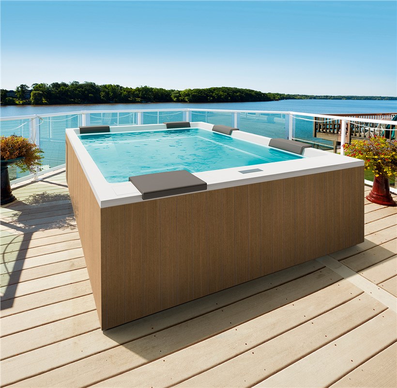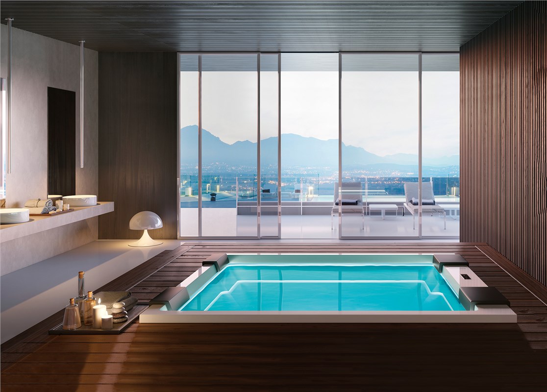 The Muse hot tub, Made in Italy, has dimensions of 280x235xH98 cm.