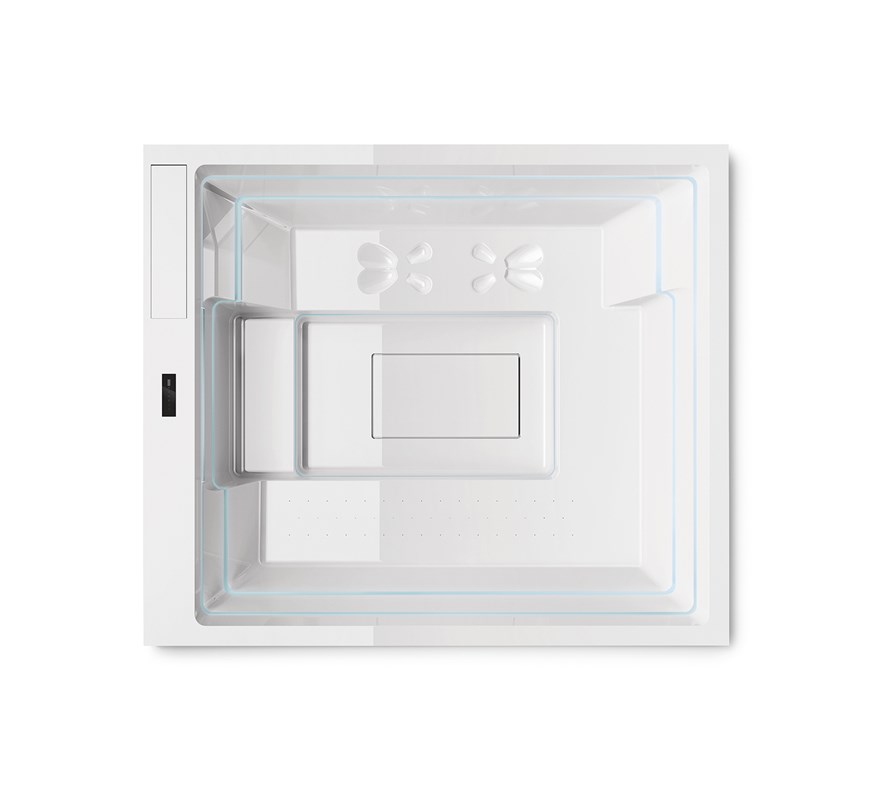 The Muse Spa is built upon the innovative Ghost system technology, a creation of Marc Sadler. This Ghost system stands as an exclusive Treesse patent, introducing a revolutionary and captivating design. It renders the latter entirely invisible, with all the technical components discreetly nestled within a slender internal perimeter groove.
