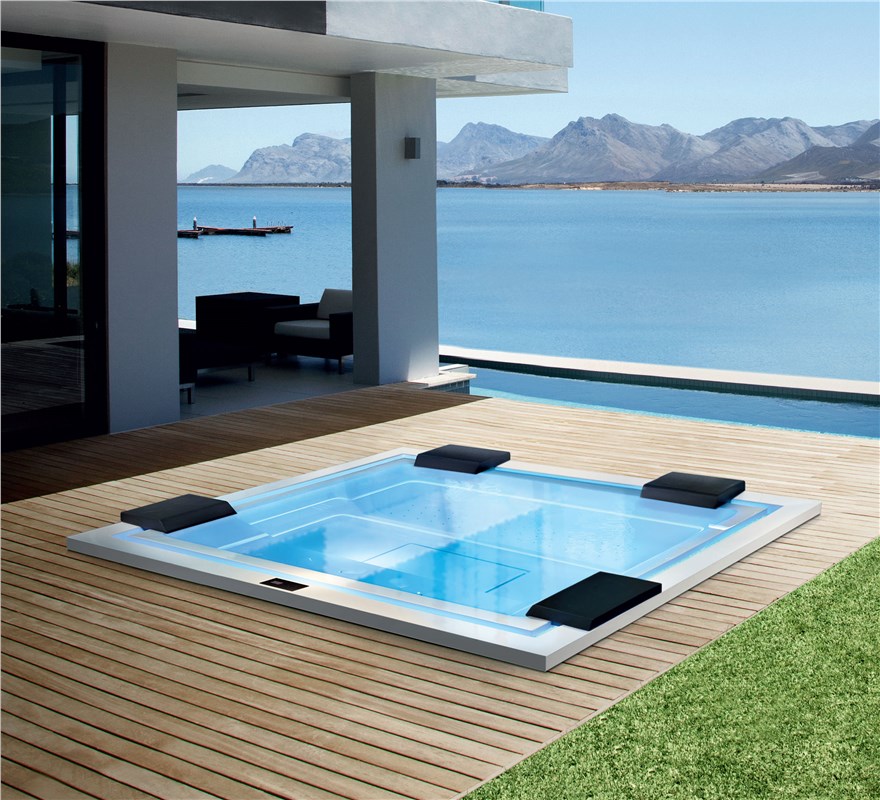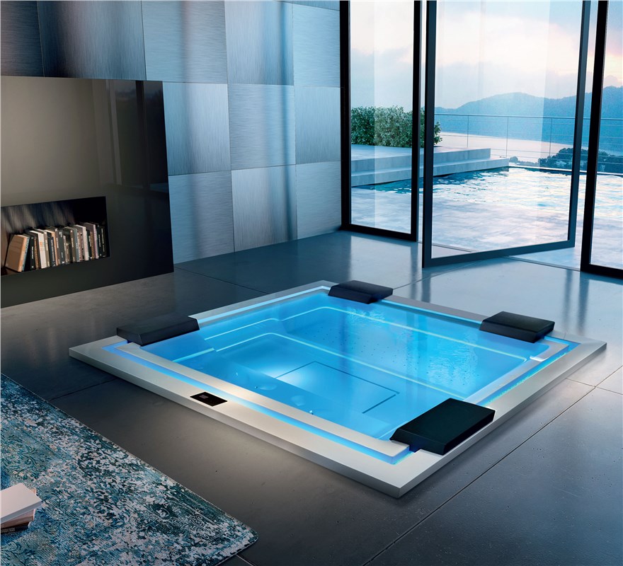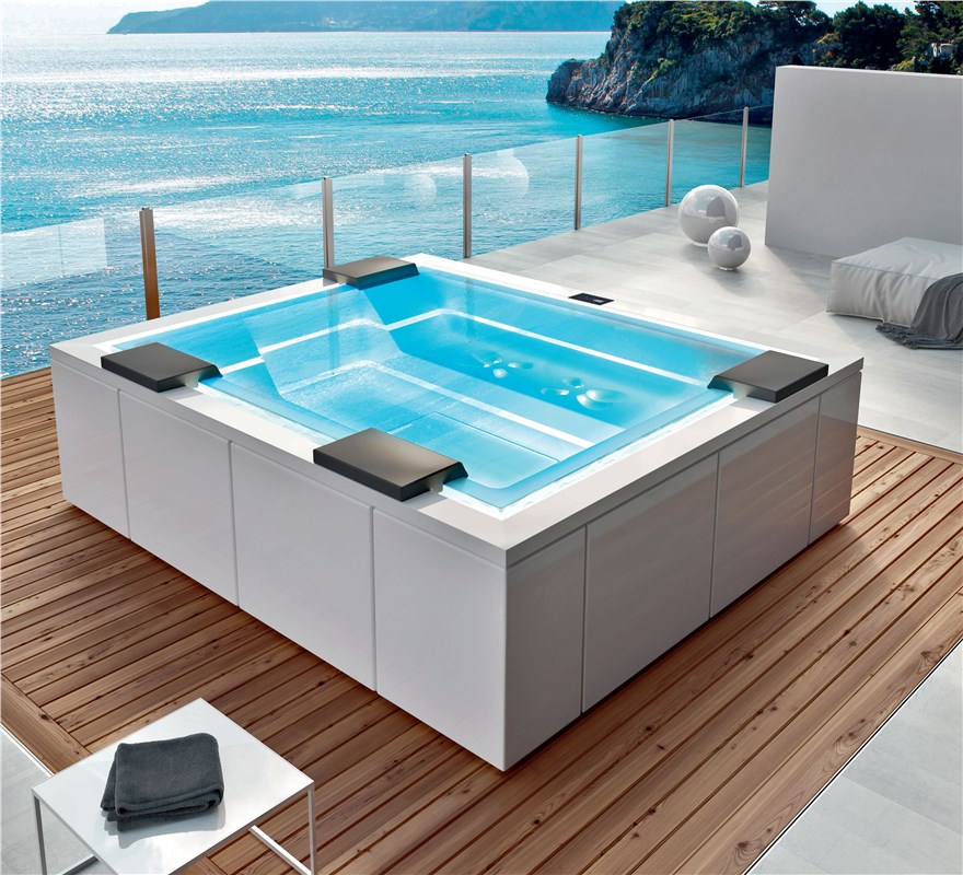 Crafted by the renowned designer Marc Sadler, the Zen spa, measuring 280x235xH85 cm, embodies the best of Italian design. It seamlessly integrates into spaces, whether recessed or freestanding, adorned with VTR paneling or a sleek dark wood finish. Utilizing the thermal cover is advised for maintaining the water's inviting warmth and pristine clarity.