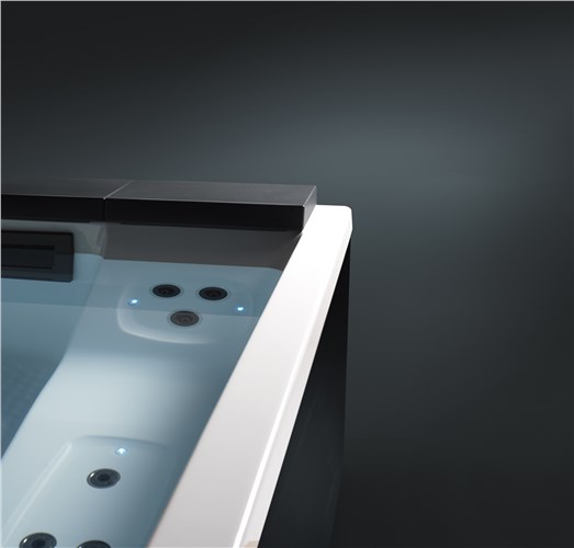 Nozzles are meticulously positioned to create a visually and functionally pleasing effect. An additional feature is the effects of chromotherapy, which is achieved through multi-colored LED lighting that gracefully animates the water. This adds to the overall immersive and complete relaxation experience, whether enjoyed alone or in the company of others.