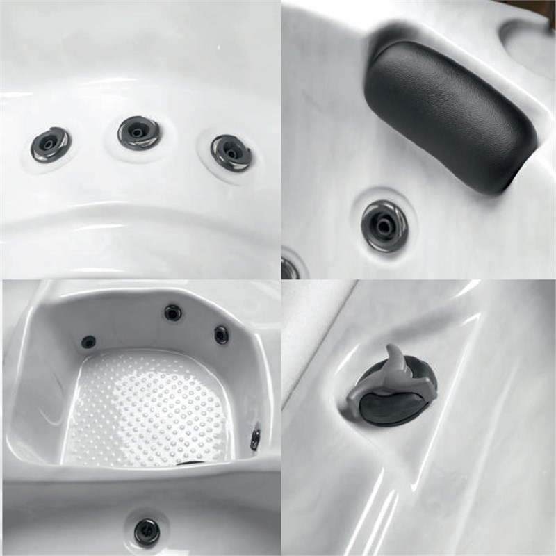 To provide the highest level of well-being, the Naxos spa employs a considerable number of hydro-massage jets thoughtfully positioned within its design. These jets create a soothing and rejuvenating experience that engulfs your entire body, offering a dimension of pleasure and pure relaxation to be cherished alone or with company. Naxos can comfortably accommodate up to five people.