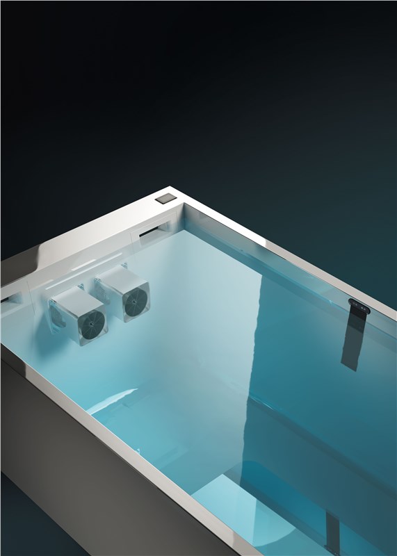 From a technical perspective, Aquarun is an innovative product with superior performance and more space and comfort compared to other counter-current swimming pools: a generous 235 centimeters in width.